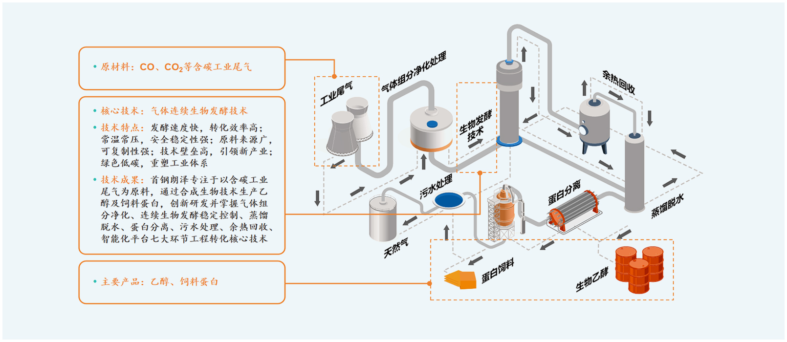 Schematic diagram of the production process for industrial off-gas biotransformation and integration